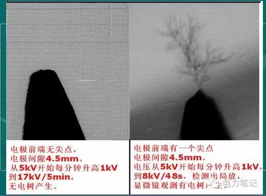 試驗:針板電極試驗、氣隙更易產生電樹